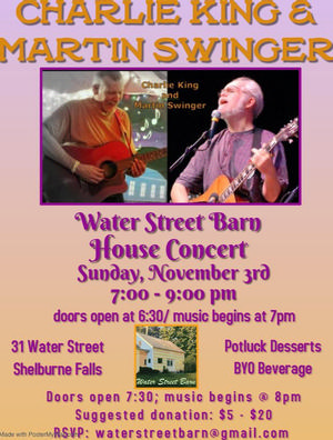 Sunday, November 3, 2019, 7:00 pm until 9:00 pm Water Street Barn Concerts/31 Water St Shelburne Falls MA /RSVP waterstreetbarn@gmail.com